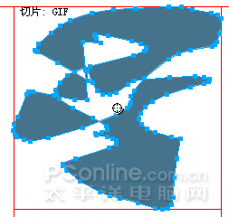 [小结]:对于单独的路径对象,无论该路径对象多么复杂,使用菜单“编辑|插入|多边形切片”命令均可以插入同路径对象相同的切片对象;但是对于合成路径对象,只要出现了不连续路径,都会统统以矩形切片的形式来出现。所以,这就需要我们在插入多边形切片之前,对路径对象要有了结,对于需要进行合成路径操作的这种情况,要尽量避免不连续路径的产生,以便于插入预期的多边形切片。最后再看一个示意图,加深一下印象。