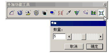 打开外加功能工具面板,双击面板中的弯曲按钮,如下图所示。在弯曲工具面板的属性对话窗口中设置弯曲的数量值为5,点击确定按钮。