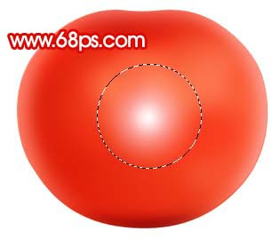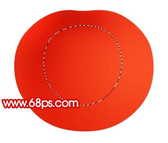 1、新建一个650 * 500像素的文件,背景为白色,然后新建一个图层命名为“主体”,用钢笔工具勾出番茄的轮廓路径,转为选区如图1,然后填充红色:#EA2F12,取消选区后效果如图2。