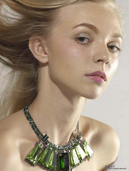 (4)可以看到眼睛,嘴唇,头发和项链等部位过于锐化。为“背景副本3”添加加模板,填充黑色,用白色画笔擦出眼睛,嘴唇,头发和项链等部位,效果如图所示。