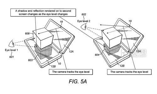 但这并不是这一专利的唯一优势,根据描述,这一设备甚至能让下方的2D屏幕显示3D影像的阴影,从而让效果更加逼真。而且,摄像头还可以计算出用户的手指与3D影像之间的位置关系,用户甚至能用手指去操控虚拟的对象!