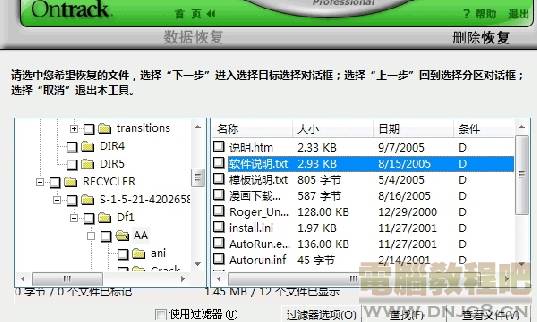 另外,一定不要在目标分区执行新的任务。这一点从概念上容易理解,但实际要做到却不是那么容易的。因为Windows会在各个分区多多少少生成一些临时文件,加上还有在启动时自动扫描分区的功能,如果设置不当或操作上稍不留意,可能已经写入了新文件你自己都不知道。所以在确认文件完全恢复成功前不要对计算机作不必要的操作(包括重新启动),特别是当你发现误删除了文件而必须安装恢复软件时,一定不要把恢复软件安装在恢复文件所在分区。例如你要恢复的是C盘中被误删的数据,而安装软件时默认路径也是C盘,此时你若一路回车安装的话,可能就要追悔莫及了。我的EasyRecovery Professional 使用经验有限希望大家可以多多交流学习 呵呵 |